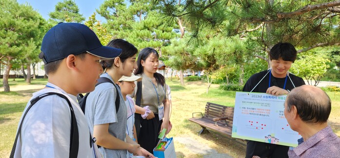 사진/수원시 아동참여위원회 위원들이 설문조사를 하고 있다.(사진제공=수원시)