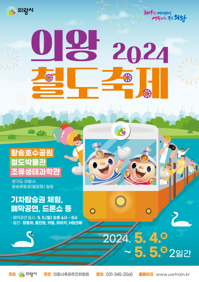 특히 5월 5일 오후 5시 30분부터 의왕시립소년소녀합창단과 의왕시청소년국악예술단의 사전 축하 공연을 시작으로 홍진영, 정동하, 하이키, 키썸, MB크루 등 인기가수의 폐막공연이 왕송호수공원에서 펼쳐진다. 공연 후에는 기차를 형상화한 드론쇼가 축제의 마지막을 화려하게 장식할 예정이다.