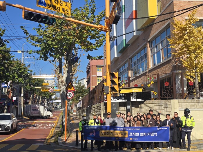 경찰의 발빠른 대응과 유관 기관들의 협조 덕분에 요청 접수 불과 2주 만인 지난 14일, 9번째 마지막 표지판이 산남초등학교 앞 사거리에 설치되며 프로젝트가 성공적으로 마무리됐다.