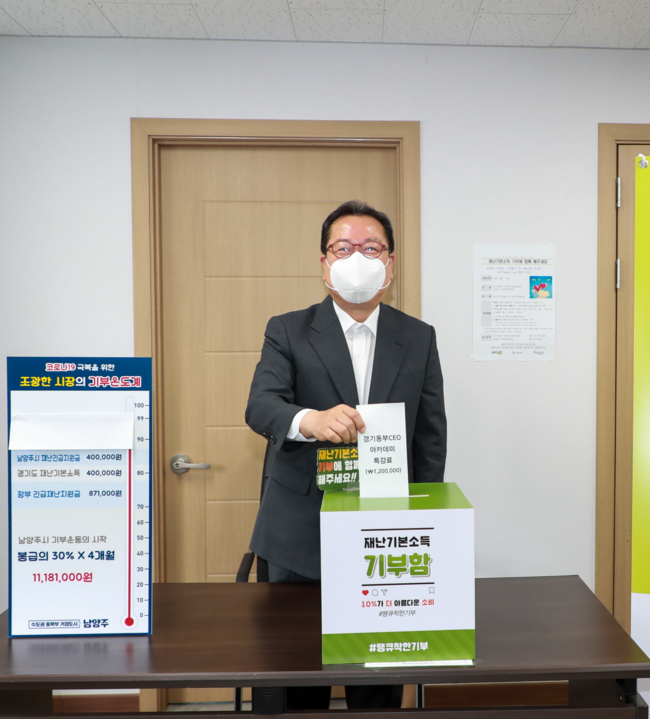 한편, 지금까지 남양주시 착한 기부운동을 통해 모금된 금액은 총 421,016,000원으로, 모인 성금은 한부모 및 조손가정 등 취약계층 자녀의 온라인 정보격차를 줄이기 위한 온라인 스마트기기 지원과 코로나19로 어려움을 겪는 시민을 돕는데 쓰여 질 예정이다.