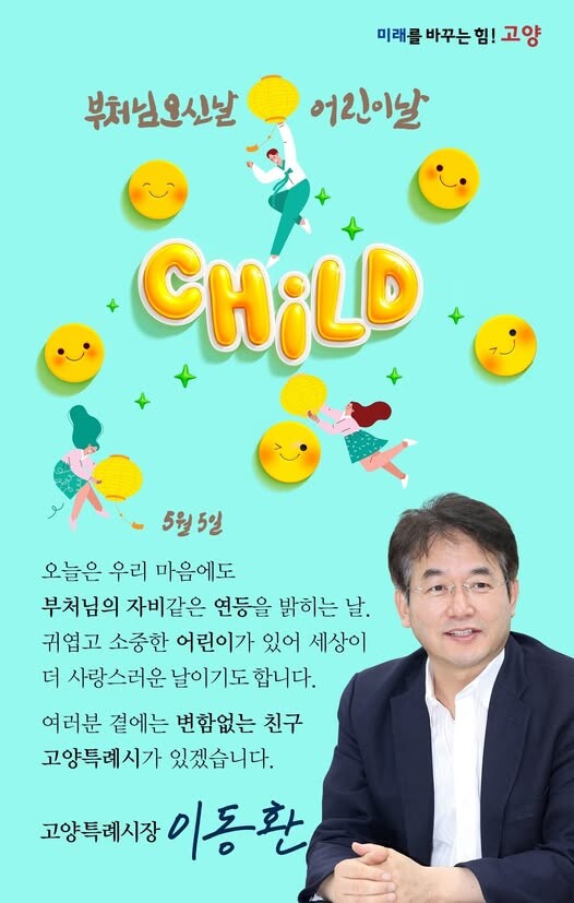 [고양=로컬라이프] 조준영 기자 = 이동환 고양특례시장은 5일, 자신의 페이스북을 통해 오늘은 우리마음에도 부처님 자비같은 연등을 밝히는 날. 귀엽고 소중한 어린이가 있어 세상이 더 사랑스러운 날이기도 하다고 밝혔다.