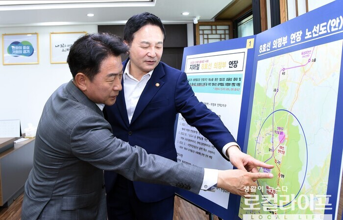 이와 관련해 김동근 시장은 22일, 자신의 페이스북에 <8호선 연장 등 의정부 주요현안, 원희룡 국토부 장관에 강력 요청>이라는 제목의 글을 올려 “지난 주 의정부시청 시장실에서 원희룡 국토교통부장관께 지하철 8호선 연장 등 의정부 주요 현안에 대한 협조를 강력히 요청했다”고 밝혔다.