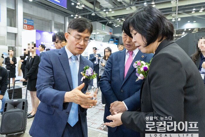 | ▲ 개막식 후 김현곤 경기도 경제부지사(오른쪽)와 내빈들이 전시장을 둘러보고 있다. (사진제공=경기도) |