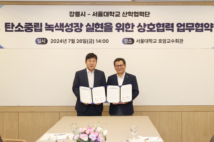 26일(금) 14시 서울대학교에서 진행되는 이번 협약식에는 김홍규 강릉시장을 비롯한 김재영 서울대학교 산학협력단장(연구부총장), 보건대학원 이승묵 교수, 김준회 강릉시 경제환경국장 등이 참석하여 탄소중립 공동 실현을 위한 협력에 나선다.