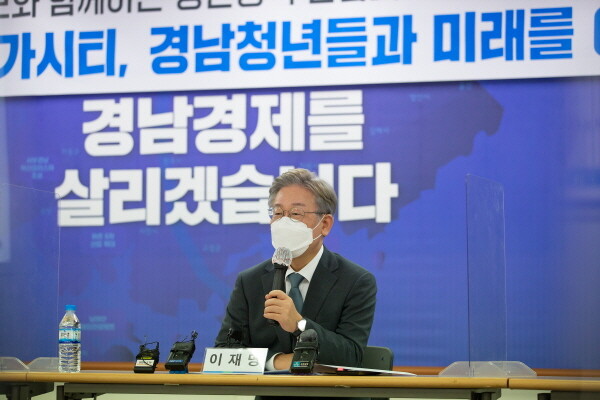 이 후보는 이어 “(지역 발전 측면에서) 김경수 지사가 추진하던 ‘부울경 동남권 메가시티’는 정말 좋은 기획이고, 중앙정부 차원에서 이어받아서 신속히 시행해야 할 플랜이라고 생각한다”라며 “그곳을 재생에너지 전환의 기지로 할 필요가 있다. 동남권의 경우 물류, 항공, 철도, 문화콘텐츠, 조선, 자동차 등 전통 제조업들의 전환이 필요하며, 그 과정에서 기회가 있을 것”이라는 견해를 피력했다.