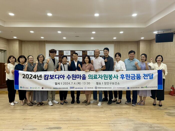 수원시 장안구보건소는 4일 보건소에서 ‘2024 캄보디아 수원마을 의료봉사’를 위한 후원물품, 후원금 전달식을 열었다.
