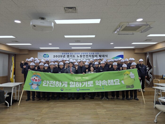 경기도가 14일 대한산업안전협회 군포교육장에서 연 ‘2025년 노동안전지킴이 발대식’에는 수원 지역 노동안전지킴이 6명을 비롯한 경기 남부 15개 시군 노동안전지킴이 62명이 참석했다.