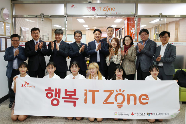 행복 IT Zone 사업은 SK하이닉스 구성원의 자발적 기부로 조성된 행복나눔기금으로 운영하는 ‘청소년 학업공간 개선 사업’으로서, 지역 청소년들이 우수한 IT 과학 인재로 성장할 수 있도록 첨단 IT 학습환경을 제공한다.