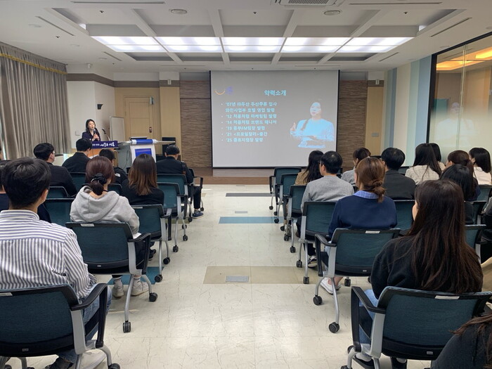 롯데칠성음료에서 주류업계 최초 여성 영업사원으로 시작해 최근 지점장까지 역임하며 15년간 다양한 직급 경험을 쌓아온 유꽃비 지점장은 이날 특강에서 조직 내 협력을 강화할 수 있는 실질적인 조언을 제공함으로써 참가자들의 공감과 호응을 받았다.