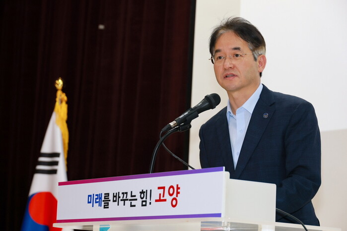 사진/‘2025년 고양시 공인중개사 자체 특화교육’에서 인사말 중인 이동환 고양특례시장(사진제공=고양시)