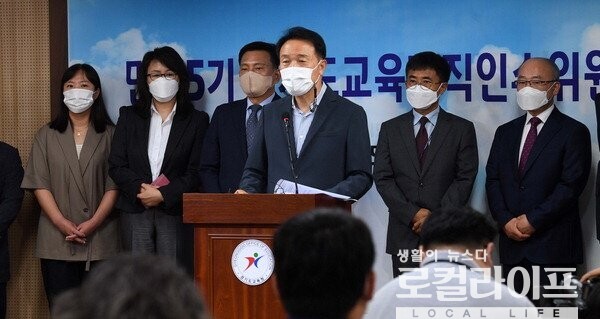 | ▲ 임태희 경기도교육감 당선인이 인수위원회 출범에 대해 발표하고 있다. (사진출처=임태희 페이스북) |