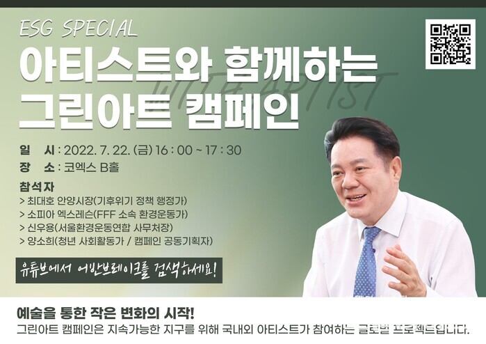 [안양=로컬라이프] 송준형 기자 = 최대호 안양시장이 어반 브레이크 유튜브 라이브 ‘아티스트와 함께하는 그린아트 캠페인’에 참석했다.