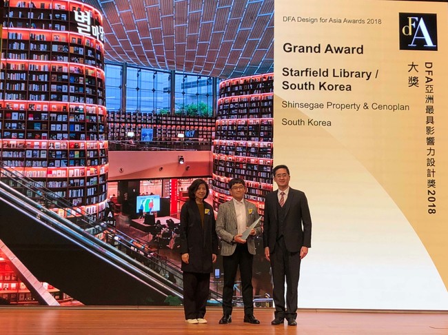 쇼핑테마파크 스타필드 코엑스몰의 ‘별마당 도서관'이 홍콩 디자인센터(HKDC)가 주관하는 ‘디자인 포 아시아 어워드(Design For Asia Awards, 이하 DFA 어워드) 2018’에서 환경 디자인 분야 대상을 수상했다.