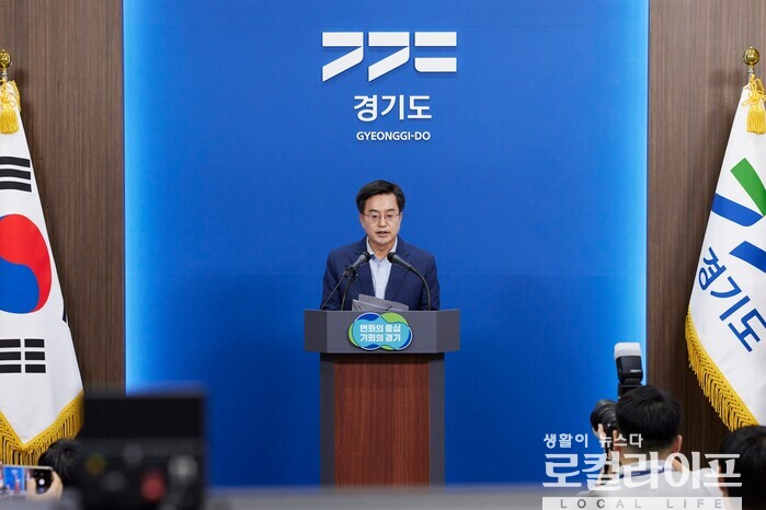 | ▲ 김동연 경기도지사가 ‘서울-양평 고속도로’와 관련해 기자회견을 갖고 있다. (사진출처=김동연 페이스북) |
