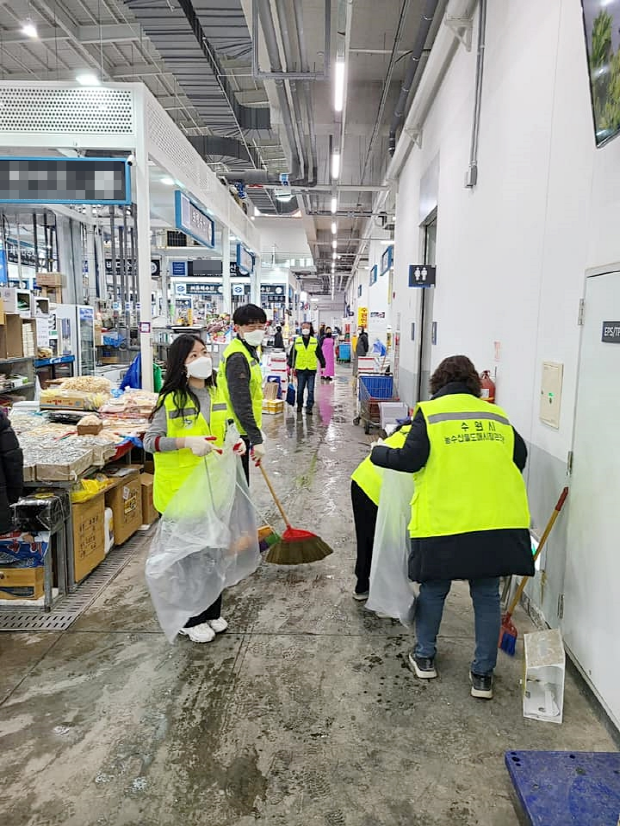 사진/ 2월 9일 진행된 수원시 농수산물도매시장 대청소.(사진제공=수원시)