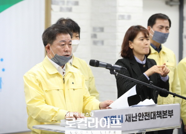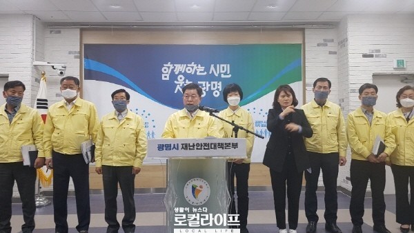 [광명=로컬라이프] 김민정 기자 = 박승원 광명시장이 9, 기자회견을 갖고 현재의 코로나19’ 사태를 소리 없는 전쟁에 비유하며 극복을 위한 연대와 협력을 강조했다.