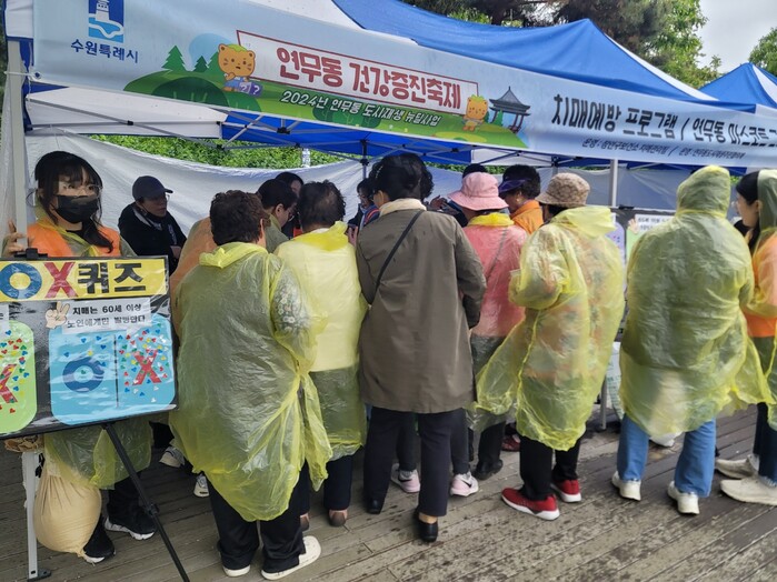 11일 장안구 연무동 퉁소바위공원에서 ‘연무동 건강증진 축제’, 18일 반딧불이 연무시장에서 ‘반딧불이 연무시장 축제’와 연계해 치매 예방 부스를 열고 캠페인을 진행했다.