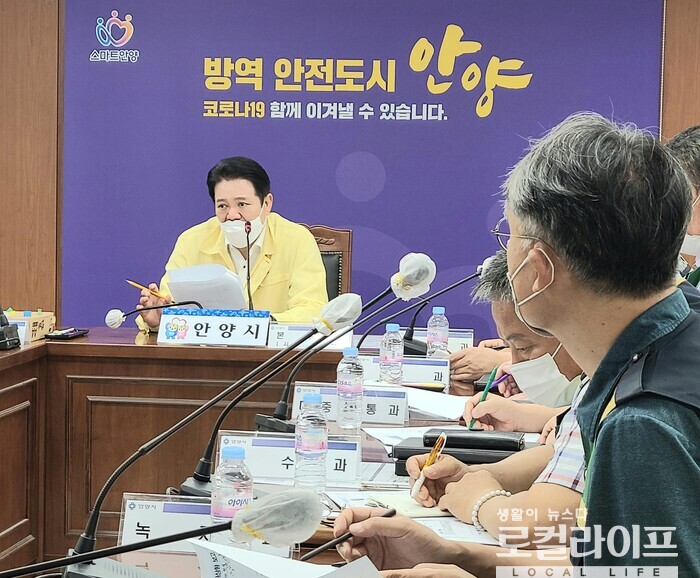 | ▲ 최대호 안양시장이 호우 피해 대책 마련을 위한 회의를 주재하고 있다. (사진출처=최대호 페이스북) |