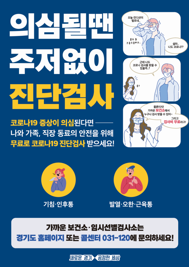 경기도, 코로나19 증상자 진단검사 행정명령 3주간 발령...행정명령 위반 시 200만원 이하 벌금, 방역비 구상 청구