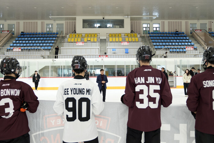 신상진 성남시장은 16일 오전 10시 30분 탄천종합운동장 빙상장을 방문해 훈련 중인 분당중학교 아이스하키부를 격려했다.