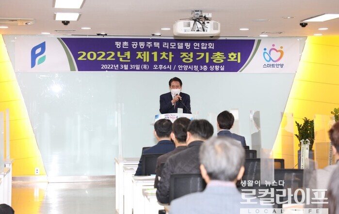 [안양=로컬라이프] 송준형 기자 = ‘평촌 공동주택 리모델링 연합회 2022년 1차 정기총회’가 27개 단지에서 참여한 가운데 3월 31일 개최됐다.