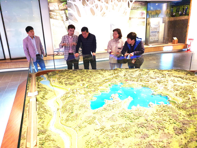 <사진/ 윤화섭 안산시장 “시화호, 서해안 대표 해양레저문화 관광지로 조성할 것” 29일 대만 일월담 방문자센터에서 윤화섭 안산시장(가운데)이 현지 해설사로부터 설명을 듣고 있다>