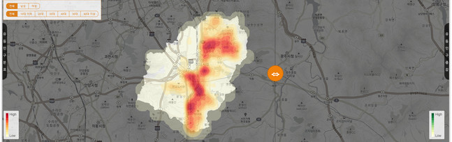 성남시는 이 서비스를 활용해 인구 밀집도가 높은 지역을 중심으로 방역 대책을 마련하고 소독 경로를 잡아 ‘핀포인트(정밀 조준점)’ 방역을 시행한다.