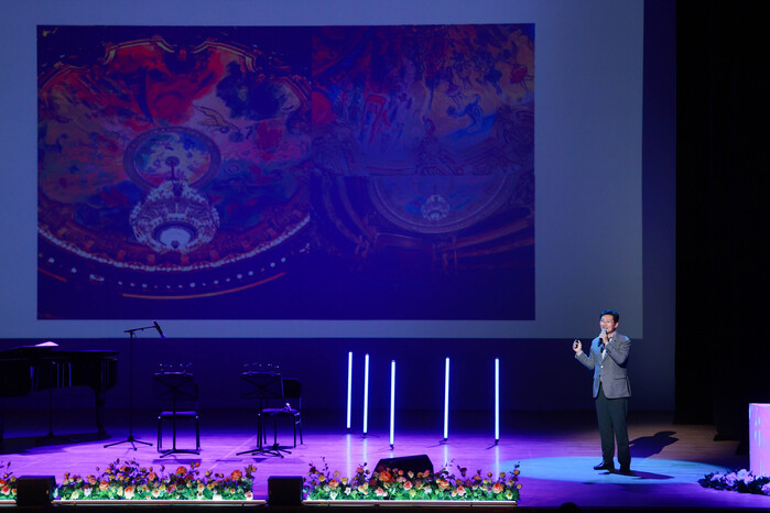이상일 용인특례시장이 8일 저녁 6시 처인구 김량장동 용인시문예회관에서 열린 ‘그림과 스토리가 있는 음악회’에 그림과 음악의 해설자로 참여해 시민들에게 특별한 무대를 선사했다.