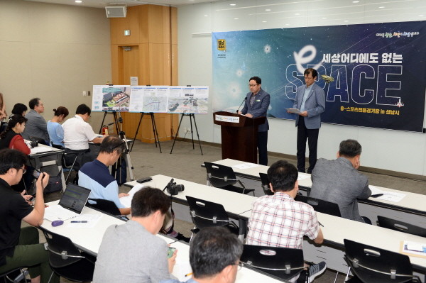 | ▲ 성남시는 ‘경기 e-스포츠 전용경기장’ 조성사업 대상지로 선정됨에 따라 글로벌 경쟁력을 갖춘 e-스포츠의 허브로 자리매김해 나가갔다는 계획이다. 사진은 22일 오후 성남시청 율동관에서 차상철 성남시 재정경제국장이 ‘경기 e-스포츠 전용경기장 조성 최종대상지 선정’ 관련 기자회견을 하는 모습. (사진제공-성남시) |