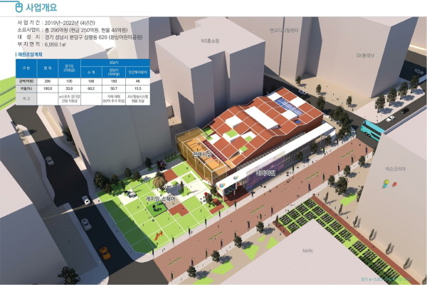 이번 선정에 따라 성남시 시유지인 분당구 삼평동 626번지 판교1테크노밸리 공원 부지(환상어린이공원) 6959.1㎡(2102.67평)에 총 연면적 8500㎡, 건축면적 3354.3㎡로 지상 3층, 지하 1층로 들어서게 된다.