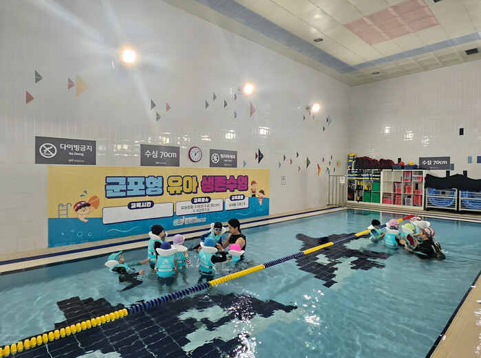 군포시청소년재단 청소년수련관(관장 박윤정)은 오는 7월 8일부터 8월 28일까지 관내 어린이집 유아를 대상으로 ‘2025년 유아 생존수영 교육’을 운영한다.