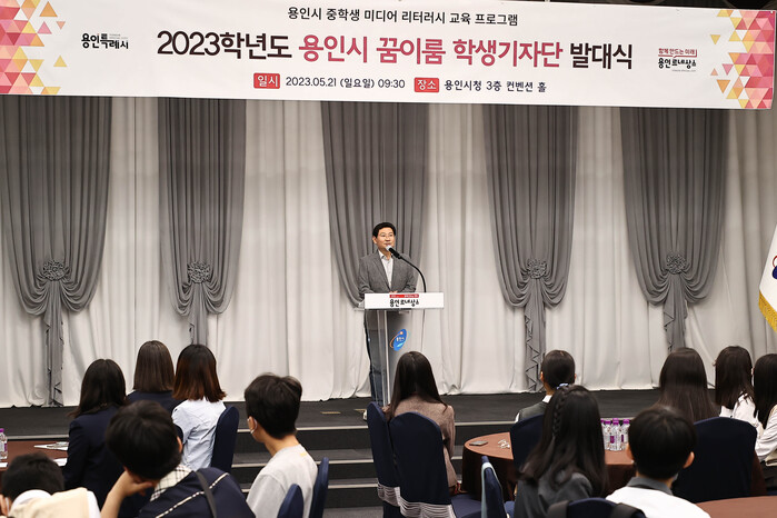 8용인특례시(시장 이상일)가 21일 본청 컨벤션홀에서 ‘제3기 꿈이룸 학생기자단 발대식’을 개최했다고 밝혔다. 발대식에는 지난 4월 지원을 통해 모집된 67명의 꿈이룸 학생기자단원들과 학부모들이 참석했다.