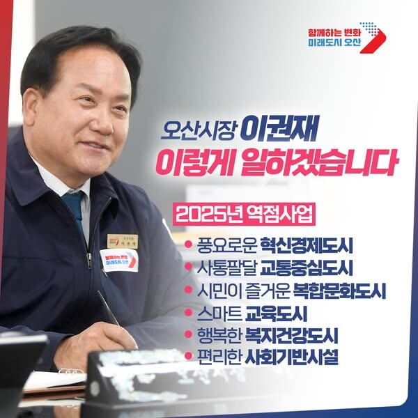 아울러 오산시가 준비한 2025년 주요시정을 소개한다며, 여러분의 많은 관심과 응원 부탁드린다고 말했다.