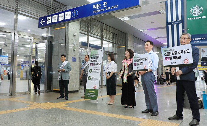 [평택=로컬라이프] 송준형 기자 = 정장선 평택시장은 21일, 평택역에서 직원들과 투표 권유 캠페인을 진행했다.