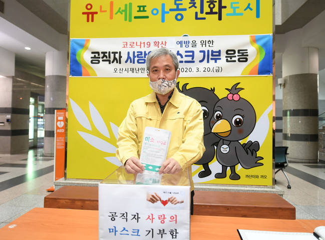 [오산=로컬라이프] 송준형 기자 = 오산시(시장 곽상욱)는 20일부터 코로나19 확산 예방을 위한 ‘공직자 사랑의 마스크 기부운동’을 추진한다고 밝혔다.