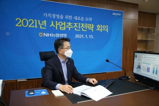 NH농협생명은 15일 올해 목표달성을 다짐하는 ‘사업추진전략 회의’를 열고 사업전략 방향을 지속 가능한 가치경영 체제 확립으로 정하고 장기 성장동력 확보에 집중하기로 했다고 밝혔다.