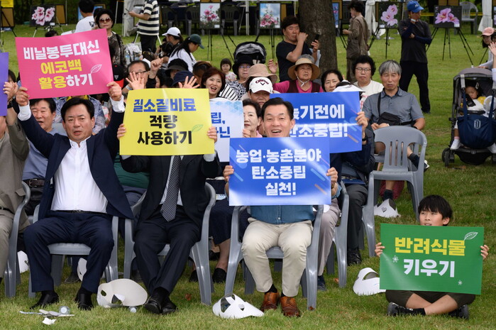 화합마당은 농악단의 길놀이와 수원시립공연단의 공연, 수원농업 발전에 이바지한 농업인 표창, 농업 분야 탄소중립 실천 결의대회, 문화공연 등으로 진행됐다. ‘참여마당’은 전시관과 체험관으로 구성됐다.