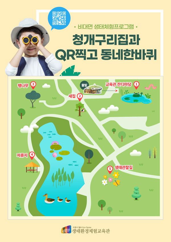 [로컬라이프] 수원시 칠보생태환경체험교육관이 코로나19로 인해 체험 교육이 어려워진 시민을 위해 비대면 생태 체험 프로그램 ‘청개구리집과 QR 찍고! 동네한바퀴’를 운영한다.