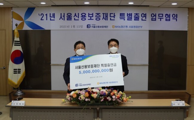 NH농협은행 서울영업본부(본부장 이석용)는 서울신용보증재단(상임이사 엄창석)과 '특별출연 업무협약'을 15일 체결하고 본 협약에 따라 50억원을 특별출연 한다고 밝혔다.