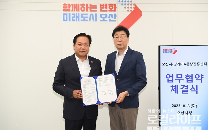 [오산=로컬라이프] 송준형 기자 = 오산시와 경기FTA통상진흥센터는 9일, ‘기업 글로벌 진출 활성화를 위한 업무협약’을 체결했다.