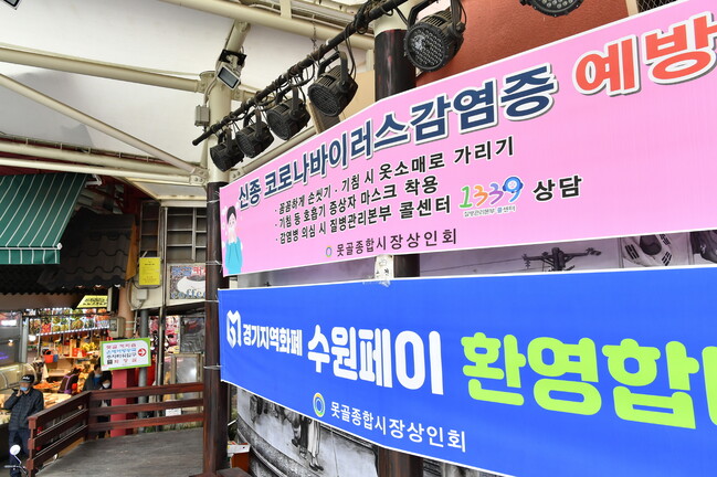사진/전통시장 입구에 걸린 수원페이 환영 현수막(사진제공=수원시)