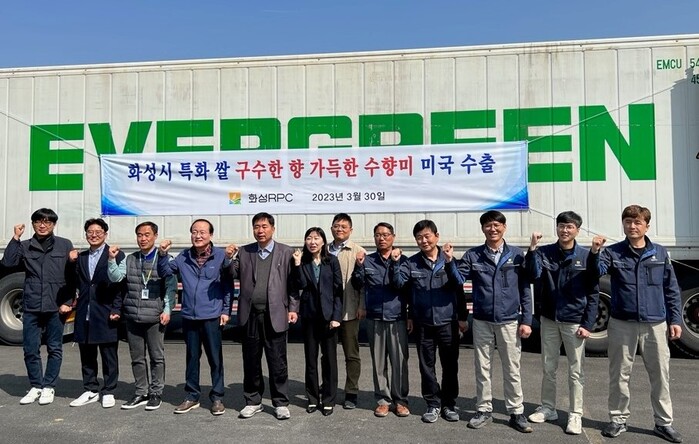 화성시 대표 명품쌀 ‘수향미’가 30일 미국 수출길에 올랐다.