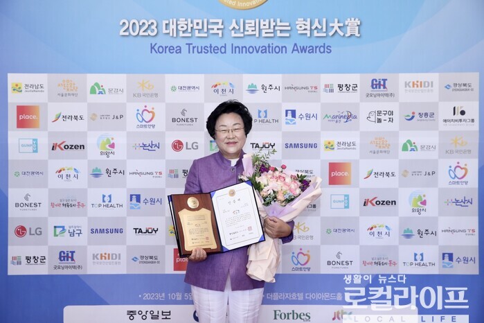 | ▲ 김경희 이천시장이 ‘제8회 2023 대한민국 신뢰받는 혁신 대상’ 수상 후 기념촬영을 하고 있다. (사진출처=김경희 페이스북) |