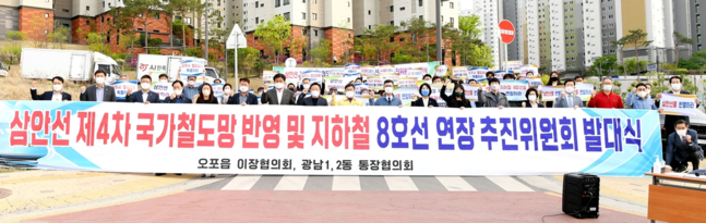 [로컬라이프] 광주시는 지난 28일 태전동 광남중학교 인근에서 철도망 확충을 위한 ‘삼안선 제4차 국가철도망 반영 및 지하철 8호선 연장 추진위원회 발대식’을 개최했다고 밝혔다.
