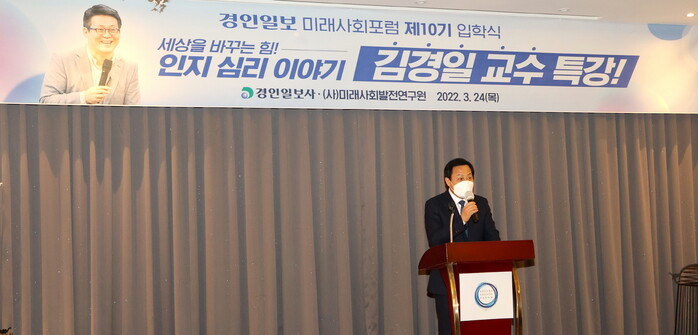 장현국 경기도의회 의장(더민주, 수원7)이 24일 오후 수원 파티움하우스에서 열린 ‘미래사회포럼 제10기 입학식’에 참석해 사회 전반에 대한 깊은 사유와 성찰의 중요성을 강조했다.