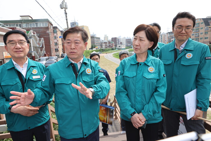 이날 박승원 시장은 목감천 현장에서 한 장관과 한강유역환경청장 등 관계기관장에게 “목감천 하천정비사업의 차질 없는 신속한 추진과 현재 표류 중인 광명시 토지주 439명에 대한 대토보상 등 원주민 재정착 지원 방안을 수립해달라”고 요청했다.