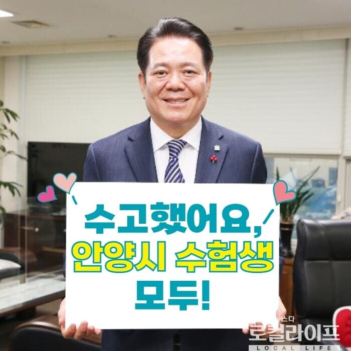 [안양=로컬라이프] 송준형 기자 = 최대호 안양시장이 수능을 앞둔 수험생들에게 격려와 응원의 메시지를 전했다.