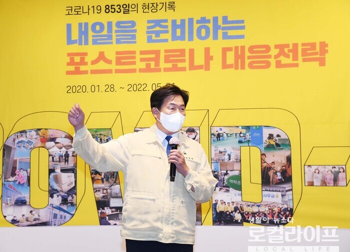 이어 “감사하고 또 감사한 마음이다. 무엇보자 휴식이 필요하다는 일선 의료진과 보건소직원들의 마음에 공감한다”며 “수고하신 분들을 위로하고 격려하는데 열심히 하겠다. 또한 코로나라는 전 지구적 위기, 국난을 극복하는데 최선을 다한 분들의 뜻을 꼭 기억하겠다. 그리고 민생위기 겪고 계신 시민분들을 돕기 위해서도 더 노력하겠다”고 각오를 다졌다.