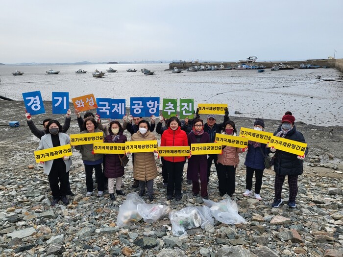 [로컬라이프] ‘경기국제공항’ 찬성 시민단체인 경기국제공항 유치 시민협의회와 경기국제공항 화옹유치위원회 2개 단체가 연합하여 지난 29일 화성 화옹지구 인근 연안에서 해양쓰레기 수거 등 해양환경 정화활동을 실시했다.