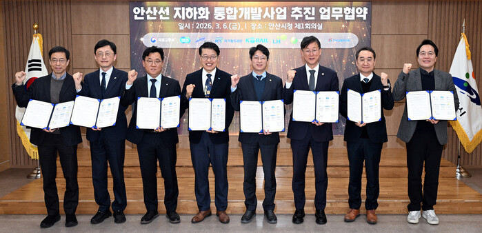 안산시(시장 이민근)는 지난 6일 오전 안산시청 제1회의실에서 ‘안산선 지하화 통합개발사업’ 진행을 위한 업무협약을 체결하고, 같은 날 오후 기본계획 수립 용역 착수보고회를 개최했다고 7일 밝혔다.